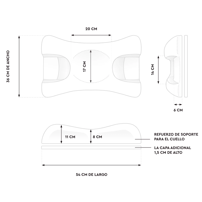 - Diseño ortopédico 3D: Desarrollada por expertos en dermatología, ortopedia y sueño. Contribuye a mejorar y prevenir dolores de cuello y espalda.